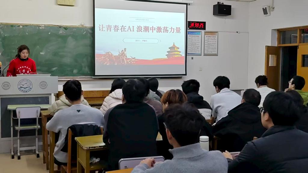 宣讲会上,主讲人围绕发展历程、核心技术、行业应用及青年发展机遇四大板块,结合生动案例,系统讲解了AI技术在科研创新、社会服务、产业升级等领域的落地成果,深入剖析了青年学子如何立足专业特色,找准AI技术学习与专业发展的结合点、发力点,分享内容兼具专业性与通俗性,兼具理论深度与实践指导意义。